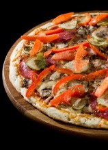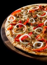 Padažas, sūris, pievagrybiai, kumpis, šoninė, vištiena, šviežios paprikos, svogūnai, raudonėliai