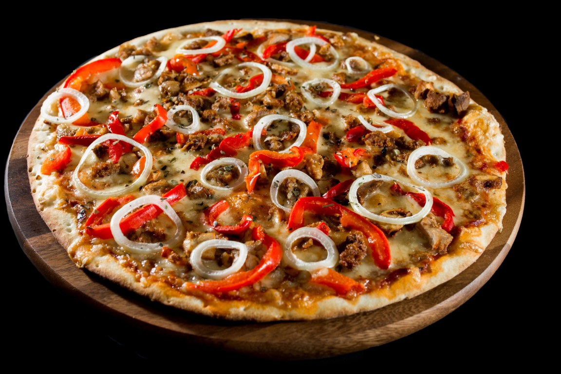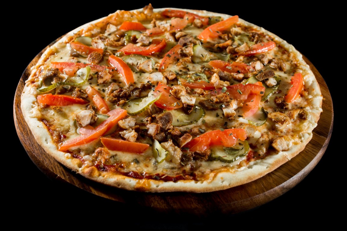 Padažas, sūris, pievagrybiai, kumpis, šoninė, vištiena, šviežios paprikos, svogūnai, raudonėliai